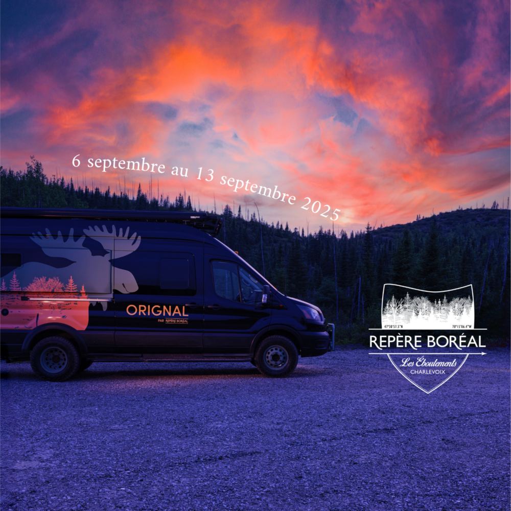 L’orignal par Repère Boréal, notre véhicule d’aventure clé en main de 21 pieds, est conçu pour accueillir confortablement jusqu’à trois personnes et vous faire découvrir Charlevoix autrement. Partez pour un séjour de 7 nuits sans souci, entre fleuve et montagne, en vous posant aux haltes déjà réservées pour vous.